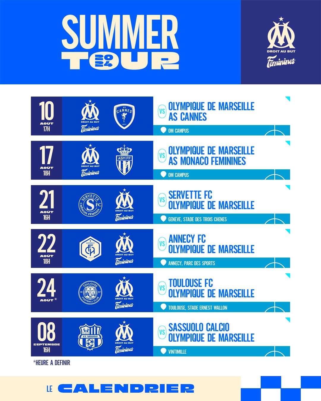 10 août 2024 : OM 2-1 Cannes Compo OM : Verdier, Couasnon, Blanchard, T. Joseph, Gobert, Paprzycki, Bourgouin, Kbida, Monguillon, Diop, Domond |