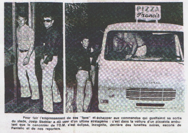 1970/1971 Le 09 juillet, un accord est trouvé entre la Juventus et l'OM pour le transfert définitivement de Magnusson. Destrumelle signe au PSG, Joseph à Valenciennes, Fiawoo à la Ciotat et Casolari à Béziers. Le 18 août Kula signe à l'OM. Un nouvel éclairage est en cours de réalisation, il sera inauguré le 24 février 1971 avec un match amical contre Moenchengladbach (1-4) devant 13.000 spectateurs. Le 04 octobre, Emmanuel Aznar décède d'une rupture d'anévrisme après avoir fait un malaise lors d'une rencontre de football. A 54 ans, il portait encore le maillot olympien. Il est enterré au cimetière Saint Pierre. Un projet de porter la capacité du stade à 55.000 ou 60.000 places est à l'étude. Le 21 décembre, Marcel Leclerc annonce que Lucien Leduc sera le nouvel entraîneur à compter de janvier. Mario Zatelli devient directeur sportif. Le 26 décembre, Gress et Pantelic deviennent Olympiens. Le 31 mars 1971, à lieu au stade de Colombes, une rencontre entre le Santos de Pelé et une sélection Marseillaise et Stéphanoise (victoire 3-1). Le 04 mai, le président Rocher déclare que Bosquier et Carnus joueront la saison prochaine à l'OM. De virulents échanges ont lieu entre les deux présidents. Le 11 mai, M. Rocher déclare que les deux joueurs ne porteront plus le maillot vert. Cette décision entraînera la chute des stéphanois en championnat, donnant ainsi le tire à son rival marseillais. Le 28 juin c'est une grande fête qui a lieu à Marseille pour célébrer le titre. Les joueurs défileront, du stade vélodrome jusqu'à la mairie, juchés sur un camion, ils mettront trois heures et demi pour effectuer le trajet. A Strasbourg, lors de la première journée, Skoblar inscrit le but de la victoire à la 88ème minute (1-2). C'est sur un penalty de Magnusson que l'OM s'impose sur Ajaccio au stade Vélodrome (1-0). C'est dans un stade archi comble, que les 4.000 supporters marseillais assisteront à la défaite de leurs protégés à Nimes (3-0), Skoblar est blessé lors de cette rencontre. Sedan fera les frais du réveil olympien (5-0), avec un double de Skoblar et de Loubet, plus un but de Couecou. Angers subira le même sort (5-1). Le match contre Nancy (2-0) est très heurté, l'arbitre n'est pas impartial, Loubet est expulsé. Pour la 8ème journée, au Vélodrome, Angoulême joue la défensive mais encaisse 5 buts. Grâce aux victoires sur Nantes (1-3) et Valenciennes, l'OM est leader du championnat avec un match en moins (contre ASSE). Le 14 octobre, ils reçoivent leur dauphin Sochaux ; l'OM joue en rouge. Après une minute de silence en mémoire de Emmanuel Aznar, Bonnel et Skoblar donne rapidement l'avantage aux marseillais. Mais en deuxième mi-temps, l'OM se laisse surprendre par Sochaux qui réussit, grâce à un penalty à la 85ème de revenir au score (2-2). Des incidents ont lieux dès la fin de la rencontre. A Saint Etienne, les verts remportent le match en retard (2-1), est reprend la tête du championnat. L'arbitrage a été encore défavorable aux marseillais. Triplé de Skoblar à Lyon (1-4), qui lui permet d'être premier au classement des buteurs. Victoire sur Metz (2-1). Le stade de Furiani étant suspendu, les présidents, Corse et Marseillais, sont d'accord pour jouer ce match au Vélodrome, mais la commission sportive du Groupement le fixera à Toulouse. Victoire 3-0. Encore une victoire sur Reims (1-0), nul à Rennes (2-2), victoire sur Nice (4-0). L'OM avec 26 points est premier. Face à Bordeaux, dernier du classement, l'OM est inexistant et s'incline logiquement (3-1). Le nul contre le Red Star, permet, quand même, aux Phocéens d'être champions d'automne. Sur un terrain transformé en bourbier à cause de la pluie, l'OM s'impose à Ajaccio (1-2), Escale stoppant un penalty. Nul encore au vélodrome contre Nimes (2-2), victoire à Sedan (1-2). Le 06 mars à lieu au Vélodrome la rencontre tant attendu entre l'OM et Saint Etienne. La rencontre est télévisée ; les Olympiens jouent avec un maillot blanc sans sponsor. Une minute de silence est observée à la mémoire de Fernandel. Les deux équipes se séparent sur un score de parité (2-2). Le 09 mars, en raison des grèves des avions, les Marseillais se rendent à Angers en train. C'est la première défaite de Lucien Leduc (2-1). Malgré les sifflets, lors de leur entrée sur le terrain au stade Vélodrome, les coéquipiers de Skoblar s'impose face à Nancy (3-0). Nuls contre Angoulême (0-0) et Nantes (2-2). Un doublé de Skoblar et une large victoire sur Valenciennes (5-2) et le Croate est leader au championnat des buteurs (28 buts) devant Keita (25 buts). Encore un nul à Sochaux (1-1) et une défaite à Metz (2-1), ou Loubet sera expulsé après une bagarre générale, relègue l'OM à trois points de Saint Etienne, leader, qui compte un match de retard. Sans Skoblar (suspendu) mes Marseillais font encore match nul au Vélodrome contre Lyon (2-2). Victoires sur Bastia (5-2), Reims (1-2) et l'OM redevient leader grace au faux pas des stéphanois. Un quadruplé de Skoblar contre Rennes (5-0) consolide encore plus sa place au classement général. Victoires sur Nice (1-2), doublé de Skoblar ; Bordeaux (3-0) ; Red Star (3-4) ou les Parisiens donnent des sueurs froides à l'entraineur Leduc, en inscrivant en fin de rencontre, trois buts en douze minutes. Lors de la 38ème journée contre Strasbourg, qui joue le maintien, 39.856 spectateurs sont présents au Vélodrome. L'OM joue en rouge. Une minute de silence est observée à la mémoire de Jules Devaquez. C'est un festival de buts, avec encore un triplé de Skoblar (6-3). L'OM est Champion de France et Josip Skoblar est soulier d'Or européen avec 44 buts. Skoblar devra quitter le stade caché dans un camion de pizza. Le 28 juin, commence la Coupe d'été (ancienne Coupe Rappan) en Suède contre l'AIK Stockholm (2-2). Skoblar réalise un triplé contre le Zaglebie Sosnowiec lors de la deuxième journée. Encore un triplé 