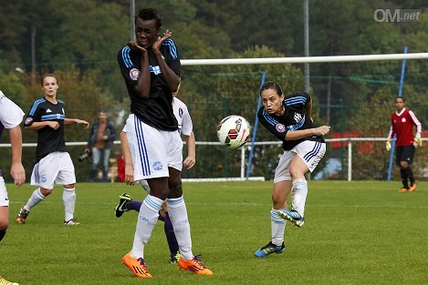 Saison 2014/2015 Pour cette première saison en 2ème division, l'équipe enregistre les arrivées de Cousin, Hatchi, Laplacette, Maiel, Pizzala, Thiroux, Vallet. Rachida Ahmed rejoint le FC Monteux. Les féminines évolueront dans le groupe C. Leur premier match les emmènera à Toulouse ou les erreurs individuelles leur permettront de voir ce qu'est la réalité de la D2 (défait 3-1). Mais le travail et le sérieux de l'équipe permettent de relancer l'équipe et leur championnat ; Muret 0-5 - Arpajon 4-1 - Claix 1-2 (Roffe délivrera ses partenaires à la 90e minute). Grâce à une nouvelle victoire sur Monteux (3-1), les Marseillaises occupent la deuxième place. Lors de la rencontre suivante contre Nivolas, les joueuses aux maillots blancs tardent à ce mettre en action et elles sont logiquement menées deux buts à zéro après seulement 11 minutes de jeu. Après leur sieste en ce début de rencontre, la débauche d'énergie des marseillaises est phénoménale, et elle permet de recoller au score (53e), avec un peu plus de jus, le hold-up aurait était parfait mais injuste pour Nivolas (2-2). A domicile contre Veore, et malgré la supériorité numérique dès la 37e minute, les olympiennes sont menées 1-0, il faudra attendre les 10 dernières minutes pour qu'elles renversent la situation et l'emporter 2-1. Lors de la 8ème journée nos olympiennes se rendent à Nîmes, leader de la poule, grâce à un magnifique coup franc de Caroline Pizzala, l'OM prend la tête de la compétition. Le derby contre le FAMF, ne permet pas aux olympiennes de conserver leur première place, pourtant tous les ingrédients étaient là, supériorité numérique depuis la 8ème minute suite à l'expulsion de Moziyan et un score favorable de 2 à zéro. Mais l'heure de jeu leur fut fatale et le FAMF plus volontaire revient facilement au score et sort l'OM de son fauteuil de leader. La rencontre suivante verra la victoire facile sur Blanzy (3-0). Mais de nouveau à domicile il faudra encore attendre les dernières secondes et l'égalisation de Pauline Cousin pour que l'OM arrache le match nul contre Le Puy (1-1). Nouvelle victoire contre Muret (2-0). Pour la 14ème journée, l'OM peut reprendre la tête du championnat suite à la défaite de Nîmes face au FAMF, mais après avoir ouvert le score les olympiennes encaissent 3 buts en 3 minutes ; deux en fin de rencontre (44e et 45e) et un dès les premières secondes (46e). Encore une occasion de gâchée. La poursuite avec Nîmes continue. Victoires sur Arpajon (1-2), Monteux (0-2) Veore (1-2) et malgré le nul à domicile contre Nivolas, l'OM peut encore croire à la montée. Le 12 avril, lors de la 18ème journée, le choc entre les 2 prétendants à lieu. Les Olympiennes ouvrent rapidement le score 17e minute et imposent leur style, mais elles ne se mettent pas à l'abri et à la 87e minute, Nîmes égalise et conserve ainsi leur première place. Désormais, elles n'ont plus leur destin en main pour prétendre monter. Malgré leurs victoires sur le Famf (1-3), Blanzy (6-1), Toulouse (1-0) et le nul contre le Puy (2-2) autre prétendante à la montée, le classement ne changera pas, les Phocéennes finiront à la deuxième place. En coupe de France les Marseillaises, grâce à un but de Eloise Vallet (44e), prendront leur revanche sur l'ASPTT Marseille qui les avait éliminées en 2012. Au tour suivant, elles retrouveront le FAMF, malgré qu'elles soient menées dès la 5e minute, les Marseillaises renversèrent la situation et l'emporteront 2-1. Pour les 16ème de finale contre Nivolas, le suspense ne durera que quelques secondes, Cécilia Vignal transformant la première occasion marseillaise. Puis les filles de Christophe Para géreront le match et l'emporteront 2 à 1. Saint Etienne, pensionnaire de première division sera le prochain adversaire. Elle fera jeu égal toute la première mi-temps, puis Saint-Etienne imposera son rythme et sur coup franc ouvrira le score. L'expulsion de Léa Rubio quelques secondes après ne facilitera pas la tâche des Marseillaises qui encaisseront un second but à la 81e minute. C'est la fin de ce très beau parcours en coupe de France. |
