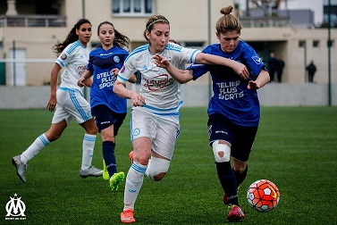 Saison 2015/2016 Pour cette seconde saison en 2ème division, l'équipe de Christophe Parra, c'est renforcée avec la venue de Avallone, Multari, Ben Chaabane, Torossian, Bretigny, Coton Pelagie, Bouchet, Lakrar. Le but cette saison est la montée en 1ère division. Elles attaquent pied au plancher en s'imposant à l'extérieur dès la première journée sur le terrain de Nivolas (2-0), puis sur celui de Toulouse (1-2) et enfin à domicile contre Arpajon (4-1). Lors de la 4ème journée, Claix sur son terrain, est malgré qu'il soit mené 0-2 à la fin de la première période, arrache dans les dernières secondes, le match nul (2-2). Ce mauvais résultat permet aux Olympiennes de se reconcentrer ; victoires sur Macon (7-1), Veore (1-4), Famf (2-0), Nivolet (0-1), Monteux (5-0), Le Puy (1-2) et Dijon (1-0) ce qui leur permet à la fin des matches aller, d'occuper la première place. Malgré avoir encaissé un but dès la première minute face à Toulouse, les olympiennes, très appliquées et sans s'affoler, inflige une sèvre défaite aux Toulousaines (4-2). Mais les olympiennes qui avaient pourtant le match en main, 3-1 à la mi-temps, contre Arpajon, encaisse 3 buts en 12 minutes dès le début de la seconde période. Il faudra un but de Caputo à la 86ème minute pour sauver les olympiennes d'une désillusion. Ce second avertissement sans frais, permet aux marseillaises de prendre vraiment conscience de l'enjeu, elles finiront en boulet de canon en remportant leurs neuf derniers matches. Claix (2-0), Macon (1-3), Veore (2-0), Famf (0-2), Nivolet (4-0), Monteux (0-1), Le Puy (2-0) ; cette victoire leur permet de monter en 1ère division ; Dijon (0-2) et Nivolet (7-0). Le contrat est rempli et en plus de fort belle manière en restant invaincu toute la saison. En Coupe de France, c'est en Corse que les filles de Christophe Parra font le déplacement. Leonie Multari, la régionale de l'étape portera le brassard. Il y a beaucoup de monde dans les travées du stade municipal. Ils sont venus pour encourager leur équipe, mais aussi Leonie. Face à cette très bonne équipe de Saint Lucie, les maillots blancs s'imposent (1-10). Face à Nîmes, les Olympiennes ouvrent rapidement le score par Cindy Caputo (11e) mais à l'heure de jeu, les "Crocodiles" égalisent. La séance des tirs au but sera fatale au Marseille (1-1 -- 5 tab 4). |
