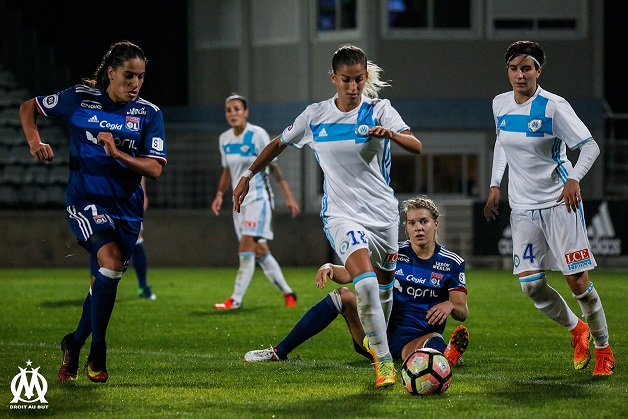 Saison 2016/2017 C'est le retour des féminines en Première Division. Il y a beaucoup de changement Océane Closset, Lalia Dali-Storti, Pauline Peyraud-Magnin, Salomé Elisor, Inès Boutaleb, Sara Yüceil, Maureen Saint-Léger, Kelly Gadea, Charlotte Lozé, Amandine Soulard renforcent l'effectif. L'apprentissage est dur. Malgré le bon match nul à Bordeaux (1-1), les olympiennes se sentent frustrées car un but, tout à fait valable leur a été refusé. Pour leur premier classico, les olympiennes ont subit mais ont fait preuves de courage, elles s'inclineront que par le plus petit des scores (1-0). Face à Montpellier, autre cador de ce championnat, elles s'inclineront lourdement (0-5). Mais l'équipe commence à prendre confiance en elle, mais là encore c'est un but à la 90ème minute qui vient entacher le bon travail fait sur le terrain (2-1). L'ogre lyonnais ne fera qu'une bouchée des Olympiennes (1-6). Les Marseillaises n'ont toujours pas gagné dans ce dur championnat, mais c'est l'apprentissage. Mais nos féminines apprennent vite, et leur volonté est toujours là. Menées 2-0 à la pause, elles arrachent le nul contre Rodez, grace à un penalty dans les dernières secondes de Sara Yuceil. Elles s'inclineront encore lourdement face à Guingamp (4-0), avec un triplé de Salma Amani. Mais le temps est venu de montrer que ces olympiennes ont des ressources. Elles s'imposeront face à Juvisy (2-1), Metz (3-0), Saint Etienne (0-2), Rodez (3-1) et Albi (0-1) ; contre les Albigeoises, elles joueront en infériorité numérique pendant plus d'une heure, suite à l'expulsion de Lalia Storti (35e). Elles ne pourront toujours rien contre Lyon (4-0), mais s'imposeront contre Albi (3-1), Metz (1-3) et pour le deuxième derby contre le PSG, elles réussiront l'exploit de les vaincre (2-0) au stade Lebert, devant 557 spectateurs. Encore une victoire sur Guingamp (2-0), mais Montpellier qui joue le titre viendra facilement à bout des Olympiennes (5-0). En gagnant contre Soyaux, les Marseillaises confortent leur 4ème place au classement. Bordeaux qui a besoin d'une victoire pour espérer se maintenir, mettra fin à la série olympienne de sept succès à domicile ; en infériorité numérique à la suite de l'expulsion de caroline Pizzala, les Marseillaises encaisseront un but à la 88ème minute (0-1). Victoire sur Saint-Etienne (3-1) et défaite, sans conséquence à Juvisy, l'OM, pour son premier championnat en première division termine à la 4ème place, dernière Lyon, Montpellier et le PSG. |
