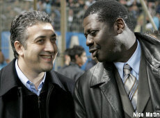 Le 26 janvier, à Marseille, il rencontra les membres du comité d'entreprise et les responsables des supporters pour exposer son plan de reprise ainsi que les ambitions qu'il a au sein du club. Le canadien poursuit son programme séduction, le 31 janvier, sur la pelouse du Vélodrome, avant le 1/8 de finale de la Coupe de France contre Lyon (victoire 2-1), il fit un double tour d'honneur, durant lesquels son nom fut scandé par les supporters olympiens. |