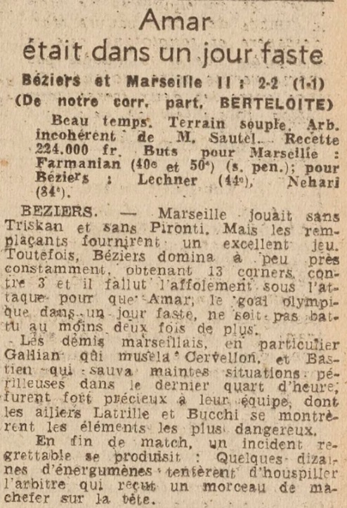 Résumé L'Equipe du 26 septembre 1949 |