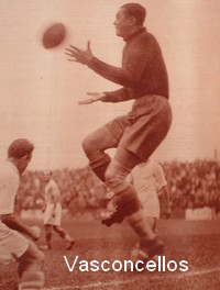 Sans doute, les dégagements des arrières et les déplacements de jeu des demis manquaient-ils de précision ; mais derrière eux veillait le souple et "spectaculaire", Vasconcellos. Sortant à bon escient considérant la limite de réparation comme son territoire propre, quitte même à la dépasser et à se faire pénaliser de ce fait, le Brésilien donnait une impression d'invulnérabilité parfaite. Ses partenaires de la défense montraient, eux, plus de vigueur que de finesse, plus de promptitude que de réflexion plus d'enthousiasme que de sûreté tactique. |