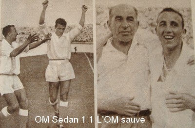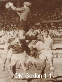 Aucune intensité, aucun moment vraiment dramatique au cours de ce Marseille-Sedan (1-1) et les candidats aux émotions fortes ont dû se retirer bien déçus. Les Sédanais n'y sont pour rien. On connaît leur esprit du jeu, mais le malheur voulut pour eux, qu'ils arrivent à Marseille un tantinet émoussés par le match de coupe Drago joué contre Montpellier le jeudi auparavant. Ils défendirent cependant leur match normalement, sans faire pour cela le match de leur vie (ils n'en avaient d'ailleurs pas besoin) mais sans négliger non plus leurs chances de succès. Le jeu des Ardennais était plus pensé, mieux construit et les mouvements de leur ligne d'attaque révélèrent une bonne organisation collective. |