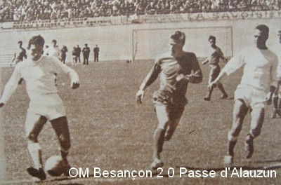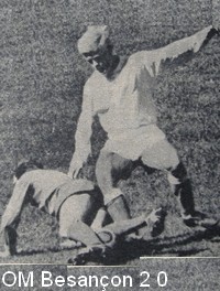 Dans son style direct et opiniâtre le puncheur de l'O.M. marqua en effet les deux buts qui ôtaient toute illusion aux Bisontins, lesquels, il faut bien le dire, s'étaient contentés, faute d'une attaque plus réaliste, de subir constamment le jeu. Autant en première mi-temps Sansonnetti s'était montré persévérant mais malheureux (il échoua trois fois seul devant Cluzel), autant après la pause il apparut percutant et sut forcer une victoire que lui seul pouvait assurer. |