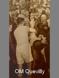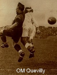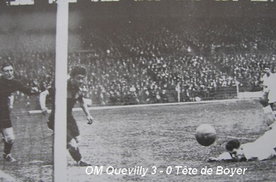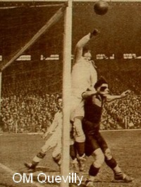 Demeilliez qui est à Quevilly ce que Schnock est à Marseille, se montra également très brillant. Seules, la taille et l'habitude des grands matches ont permis à Schnock d'éclipser son rival de l'équipe adverse. Après ces deux joueurs, il faut citer, sur un même plan, chez les Marseillais, Gallay, Devaquez, qui pourtant, fut peu utilisé, Boyer, Crut, Durand, Drubec, Cabassu, Allé. Vous voyez que les noms de joueurs sont nombreux. La preuve est ainsi faite que Marseille se comporta très honorablement. A Quevilly, l'aile gauche Déans-Guillard fut, avec Demeillez, un légitime sujet de fierté pour les supporters normands. |