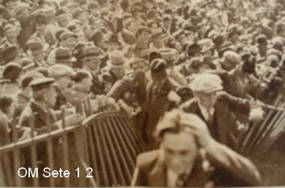 Nous précisons : payants, parce que plusieurs centaines de sportifs énergiques, sur les 10.000 personnes condamnées à rester dehors, prirent d'assaut les gradins du virage après avoir bousculé le service d'ordre, pénétrèrent ensuite sur la piste et les abords du terrain, lorsque la barrière de fer eût cédé sous leurs pression. Quand l'invasion se produisit, le match se déroulait depuis une vingtaine de minutes, un match dur, âpre, sans enjolivements, sans concessions ni à l'adversaire, ni à l'art du football, bref, tout entier tendu vers le résultat. Marseille, par Zermani, avait marqué un but, apparemment hors jeu, au bout de 120 secondes, mais les Sétois avaient le cœur bien accroché, le moral à toute épreuve et ils ne se montrèrent pas affectés par cette douche glacée< |