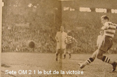 C'était trop demander à la lourde triplette du centre Alcazar, Boyer, Eisenhoffer, que d'attendre d'elle des percées en vitesse en finesse, et même en force. Seul Alcazar, en fin de seconde mi-temps, donna le coup de boutoir nécessaire pour obtenir le but d'égalisation. Par malheur, le but fut annulé, le juge de touche, M. Boês ayant auparavant signalé un hors-jeu de Zermani. Cette annulation provoqua, on s'en doute, les vives protestations des Marseillais L'arbitre, M. Baert, et le juge de touche M. Boês, furent pris à partie, injuriés et menacés par Di Lorto, Zermani, et Alcazar... Sète, avant cet incident, avait marqué, à la soixante-quinzième minute, un second but à la suite d'un terrible shot de Beck sur le poteau, qui renvoya le ballon dans le terrain juste dans les jambes de Lukaes, démarqué. |