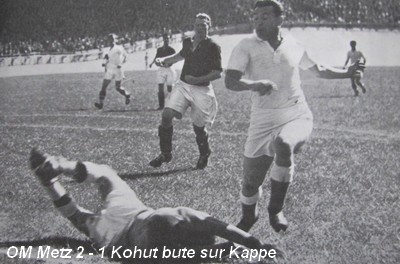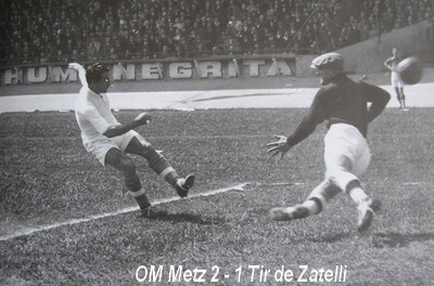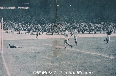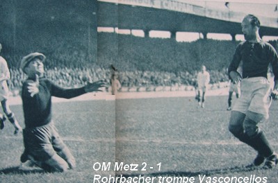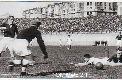 Les dernières minutes du match furent extraordinairement mouvementées, non pas en ce qui concerne l'action sur le terrain de jeu, mais pour ce qui se passa aux abords . les 3.000 Lorrains venus encourager leur équipe jetèrent des centaines de coussins sur le champ de jeu. L'OM avait quand même mérité son succès et il manifesta tout au long de la rencontre une supériorité technique sur les messins. Dans l'équipe victorieuse, le gardien Vasconcellos fit preuve de beaucoup d'assurance, tant qu'il ne fut pas menacé sérieusement. Il se plaça bien, il capta tous les shots, et il avait l'air d'exercer une influence magnétique sur le ballon ainsi que sur les avants messins. |