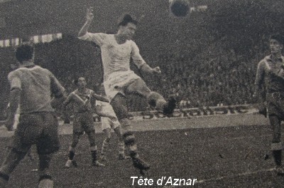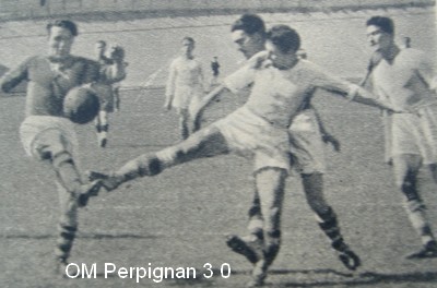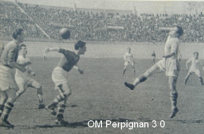 De même, Aznar, quand il marque, d'une admirable volée du gauche, le troisième but à la 64e minute, sur passe de Dard, dispose de la plus entière liberté d'évolutions. Enfin Pironti, à l'instant où il place le quatrième but, vers la 80e minute, de nouveau sur passe de Dard, occupe une position si confortable qu'il commence à lever les bras d'allègrese avant même que le ballon ait pénétré dans les filets ! Les Marseillais ont été de grands vainqueurs. Ils se sont comportés en joueurs de division nationale devant des adversaires médusés de seconde division, et leur triplette d'avants de pointe a pratiqué le football de plus incisif, le plus moderne, le plus efficace que l'on puisse souhaiter. . |