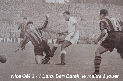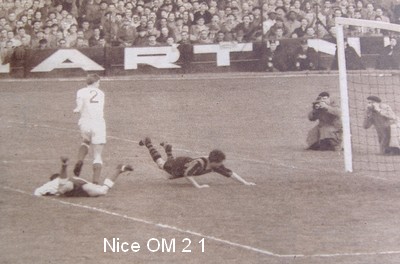 Et celle-ci, ce n'est pas douteux.fut fatale à leur équipe. D'autant plus que dans le camps adverse, deux joueurs (Cuissard et Mahjoub) opèrent aux mêmes places de demi ailes, avec un rare brio. De ce fait l'attaque niçoise, remarquablement étayée par les dits Cuissard et Mahjoub, fut beaucoup mieux approvisionnée que celle des Marseillais. Elle put, presque à son aise, concevoir et exécuter des actions offensives qui, neuf fois sur dix, affolaient les défenseurs phocéens, livrés à eux-mêmes ou presque par l'insuffisance de leurs demi ailes.