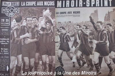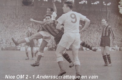 L'O.G.C. Nice vient de remporter la Coupe de France pour la seconde fois et malgré les difficultés accusées par son équipe en seconde mi-temps. Il faut reconnaître que son succès fut mérité : les joueurs azuréens ont produit le meilleur football au cours d'une rencontre qui ne prendra pas place parmi les "grandes finales".Le onze de Nice, dimanche à Colombes a confirmé ce que l'on pensait de lui par rapport à la formation de Marseille. Plus d'équilibre, non seulement dans la répartition des valeurs, mais dans la production. On s'attendait à ce que les Marseillais cherchent à confondre l'ordonnance supérieure du jeu des Niçois par des coups de boutoir, et profiter de la situation pour marquer par l'intermédiaire de leur canonnier Gunnar Andersson