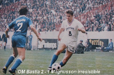 Cahuzac, son entraîneur trop tôt encensé, avait bien voulu espérer que sa formation fournirait un spectacle de qualité. Encore aurait-il dû donner des consignes dans ce sens. Et obliger Savkovic à occuper une position plus avancée par rapport à ses partenaires. Il n'en était bien sûr pas question ! Et Bastia, en plus d'une indigence flagrante dans la construction, y ajouta l'emploi de tous les moyens répréhensibles pour stopper l'adversaire. Calmettes, Luccini et même Tosi ne se souciaient guère de l'intégrité physique de leurs opposants. Et Tosi notamment ne savait comment s'y prendre pour enrayer les raids dévastateurs d'un Magnusson virevoltant comme à ses plus beaux jours. |