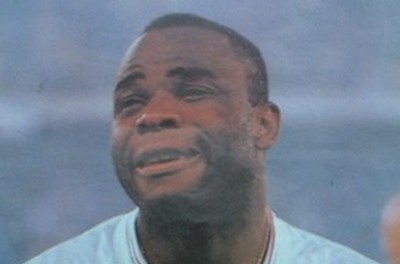 Celle de Basile Boli courbé, son visage inondé de larmes caché dans ses mains crispées. Ca fait du mal, un homme qui pleure. Avec Basile, on a encore plus mal. Longtemps, Basile va errer comme une âme en peine, appelant l'air frais du soir de son souffle court. Il a ce regard perdu vers l'infini qui ne comprend pas, qui n'en revient pas, qui ne croit pas que tout se soit achevé par cet immense gâchis.