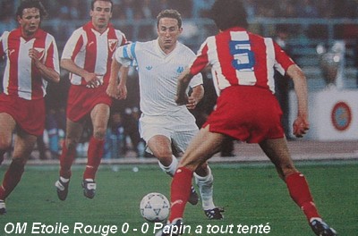 Il s'élance, se bloque juste avant la frappe qu'il décoche trop précipitamment, trop tôt. Comme hypnotisé par Stojanovic, il lui tire dans les mains. Après Amoros, ceux de l'OM courront, sans vraiment y croire, après ceux de Belgrade. Casoni après Binic, Papin après Belodevic, Mozer après Mihajlovic. Toujours un but d'avantage pour les Serbes. Il est exactement 22 h 50 quand Darko Pancev s'élance pour le dernier tir yougoslave. S'il le manque, l'OM garde ses chances, sinon.... Il marque, c'est fini, La coupe est yougoslave.