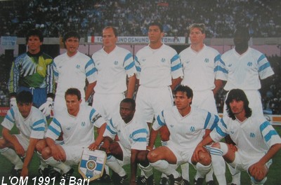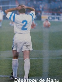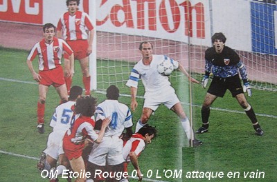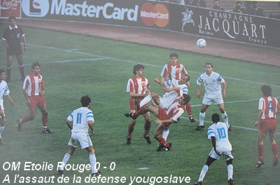 C'est trop dur : car  l'OM de Basile et de ses frères n'a pas mérité ça. Ils l'ont dominée, cette finale. Ils devaient la gagner dix fois.Et ils la perdent stupidement après un combat de deux heures, pour un tir au but repoussé par Stojanovic Décidément, le football français est maudit. En 1976,c'est un coup franc de Roth qui fait trébucher Saint-Etienne. Quinze ans après, l'histoire bafouille quand elle nous sert, tout froid, bien glacé, l'épisode d'Amoros tirant dans les bras du gardien yougoslave au cours d'une séance de penaltys, cruelle, injuste, inhumaine. Marseille pleure de ne pas avoir offert à la France sa première coupe européenne.