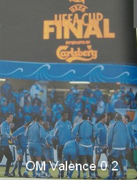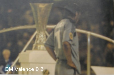 Didier Drogba qui a plané sur toute la saison aborde diminué la finale à la suite d'une blessure à la hanche contre Monaco. Il a explosé les défenses de Liverpool et Newcastle, a usé l'Inter de Milan au match aller et a enthousiasmé la foule marseillaise tout au long de la saison. Contre Valence, mal protégé par l'arbitre Mr Collina, Didier ne pourra contrarier le sort d'un match dont l'épisode principal se situera à la 45eme minute après que l'OM ai mis son empreinte sur la partie. |