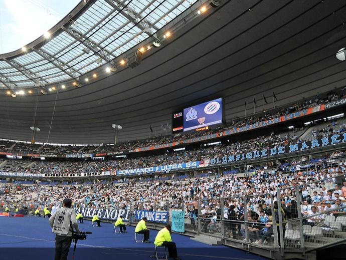 Pour la deuxième année consécutive, l'OM a rendez-vous au Stade de France pour disputer la finale de la Coupe de la Finale. Tenant du titre, cette fois ci il est opposé au Montpellier de Loulou Nicollin. 22000 marseillais et 17000 Montpelliérains ont fait le déplacement pour cette finale 100% sudiste. Mais l'OM aura l'avantage dans les tribunes, beaucoup de supporter Marseille résident aux environs de Paris. Montpellier jouera avec son maillot bleu de coupe de la Ligue, short orange et bas bleus. Marseille jouera entièrement en blanc. Pour la deuxième année la Coupe restera à Marseille, mais ce ne fut pas facile. |