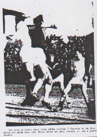 C'est là aussi un des faits ayant conditionné le déroulement et le résultat de la partie. Joseph remplace Escale En première mi-temps, ce fut le match nul absolu. A une tête de Casolari qui surprit Ranouilh mais expédia de peu le ballon à côté, répondit un tir appuyé de de Bourgoing, bien arrêté par Escale. Peu avant la pause, sur un coup de tête de Couecou, Joseph sauva la situation et le but d'un autre coup de tête très puissant. C'est à peu près tout ce que l'on peut écrire de cette première mi-temps. Mais déjà, comme nous le disait Koranyi, l'ex-grande vedette sétoise, il apparaissait que l'O.M. jouait au moins aussi bien que Bordeaux et avait une chance très sérieuse de se qualifier. 62e minute : Buron s'en va, Erhardt marque. La deuxième mi-temps fut celle du k.o. des girondins. Gauthier l'eut d'abord (à la 51me minute) au bout de son pied. Sur un centre très habile de Buron, le ballon mal repoussé par la défense bordelaise, vint rebondir devant lui. Le but était là, grand ouvert, à 10 mètres à peine du capitaine olympien. Il le vit mieux que nous, mit toute sa force dans son tir... et enleva le ballon. On plus alors croire que l'O.M. venait de laisser passer sa chance. Il n'en était rien. À la 62me minute, Buron pour échapper à Moevi "l'araignée" choisit de partir au centre. Poursuivi par son adversaire, il avança, avança jusqu'au coeur de la défense bordelaise. Là, le ballon contré à grande peine par Péri, se dirigea vers la droite. Erhardt arrivait au sprint et d'un tir irrésistible de l'extérieur du pied droit battit Ranouilh sans rémission. Un à zéro pour l'O.M. 84e minute : Hatchi donne à Casolari le but du k.o. Vexés, les Girondins se ruèrent à l'attaque, mais dans le désordre. Avec tellement de foule, toutefois, que Couecou accueillant Escale en plein vol alors que ce dernier avait le ballon, expédia le gardien de l'O.M. au tapis pour un peu plus que le compte. Plus de peur que de mal heureusement. Soigné, réconforté, Escale put reprendre sa place avec une blessure à la jambe toutefois. Dès la reprise du jeu, Joseph tapait comme un sourd dans la semelle de de Bourgoin, avant de se rouler de douleurs au sol. Lui aussi put reprendre son poste assez rapidement. Et c'est alors que Bordeaux se ruait littéralement à l'attaque, que survint le deuxième coup... celui du k.o. décisif. Hatchi, sur la droite, dans une partie du terrain dégarnie de joueurs, tellement les Bordelais s'était déportés vers l'avant hérita du ballon. Un dribble, et Calleja était éliminé. Poursuivant sa course balle au pied vers les buts, Hatchi s'aperçut que Péri se trouvait seul entre lui et Casolari. Très calmement il attira Péri et passa à Casolari, lequel, à bout portant, trompa Ranouilh une deuxième fois. Nous étions à la 84me minute, c'était donc la fin. |