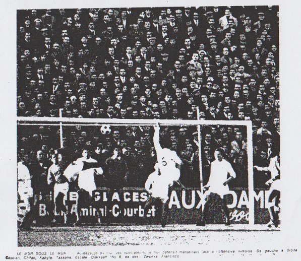 Il y avait à Jean Bouin une ambiance de feria. Du soleil, du mistral est trop de candidats spectateurs pour le vétuste stade nîmois. Comme nous "montions" pédibus vers Jean Bouin nous croisâmes la file "descendante" des sans billet. Ce bon peuple était venu pour voir Skoblar le matador, en espérant que le toro nîmois l'emporterait. La "cornade" en quelque sorte. 30 secondes : l'estocade Le El Cordobes de Croatie n'attendis pas que les retardataires soient installés pour tenter et réussir, sa 9me estocade, depuis qu'il porte l'habit blanc de l'O.M. Notre chrono n'avait pas encore tourné sa première minute, que Landl, le moustachu, ramassait le ballon au fond de sa cage. Un but parfaitement anarchique et que l'on ne vit, certainement jamais inscrit à un quelconque tableau noir. Touche pour l'O.M. Buron passe la balle à Destrumelle qui la lui rendit du front. Centre aérien de l'ex-international rouennais. Kabyle bondit et d'un magnifique "coup de boule" expédia le ballon en deçà de la surface de réparation, mais juste devant le pied gauche de Skoblar la Foudre. Il s'en suivit une reprise directe, franche, net, qui catapulta le ballon dans le coin droit de la cage nîmoise, ras de terre. O.M. : 1 - Nîmes : 0. La partie était terminée NIMES : ardeur et désordre Les Nîmois dans la bonne volonté, l'ardeur à la lutte, le désir de vaincre, faisaient plaisir à voir, réagirent aussitôt. L'O.M. ne se laissa pas intimider, nous devions assister alors, a 20 minutes environ de bon football. La vérité nous obligea à ajouter que, passé ce laps de temps, la partie allait sombrer dans la confusion la plus totale. Durant cette première mi-temps, les Nîmois devaient se battre eux-mêmes, en ratant par manque de sang-froid, toutes les occasions qu'ils se créèrent ou que les défenseurs de l'O.M. leur offrirent. On vit Gomez, seul à deux reprises dont une avec la bénédiction de l'arbitre de touche, enterrer le ballon. Sur centre du même Gomez, faisant suite à un travail de cape suave de Marcellin, Hatchi, nous nous demandions encore comment, mit le ballon dans les mains d'Escale. Francisco, l'homme invisible du match, interceptant une passe hasardeuse de Zwunka à Escale, évita le plongeon du gardien nîmois et poussa trop loin son action. Bref, les "Crocodiles" dominèrent, se battirent avec un courage digne d'éloges, mais dans le plus grand désordre. Or, le bon football, nous ne vous l'apprendrons pas, est un sport d'ordre, de calmes et de précision. Suivant l'expression chère aux athlètes : "il faut exploser dans la décontraction". Émotions : Skoblar reste au tapis Donc, pendant que les Nîmois, à l'image de Charles Alfred ; de Kabyle, de Garnier, de Novi et de Hatchi, monopolisaient le ballon sans en faire un bon usage, Skoblar fit encore trembler les spectateurs de Jean Bouin. |