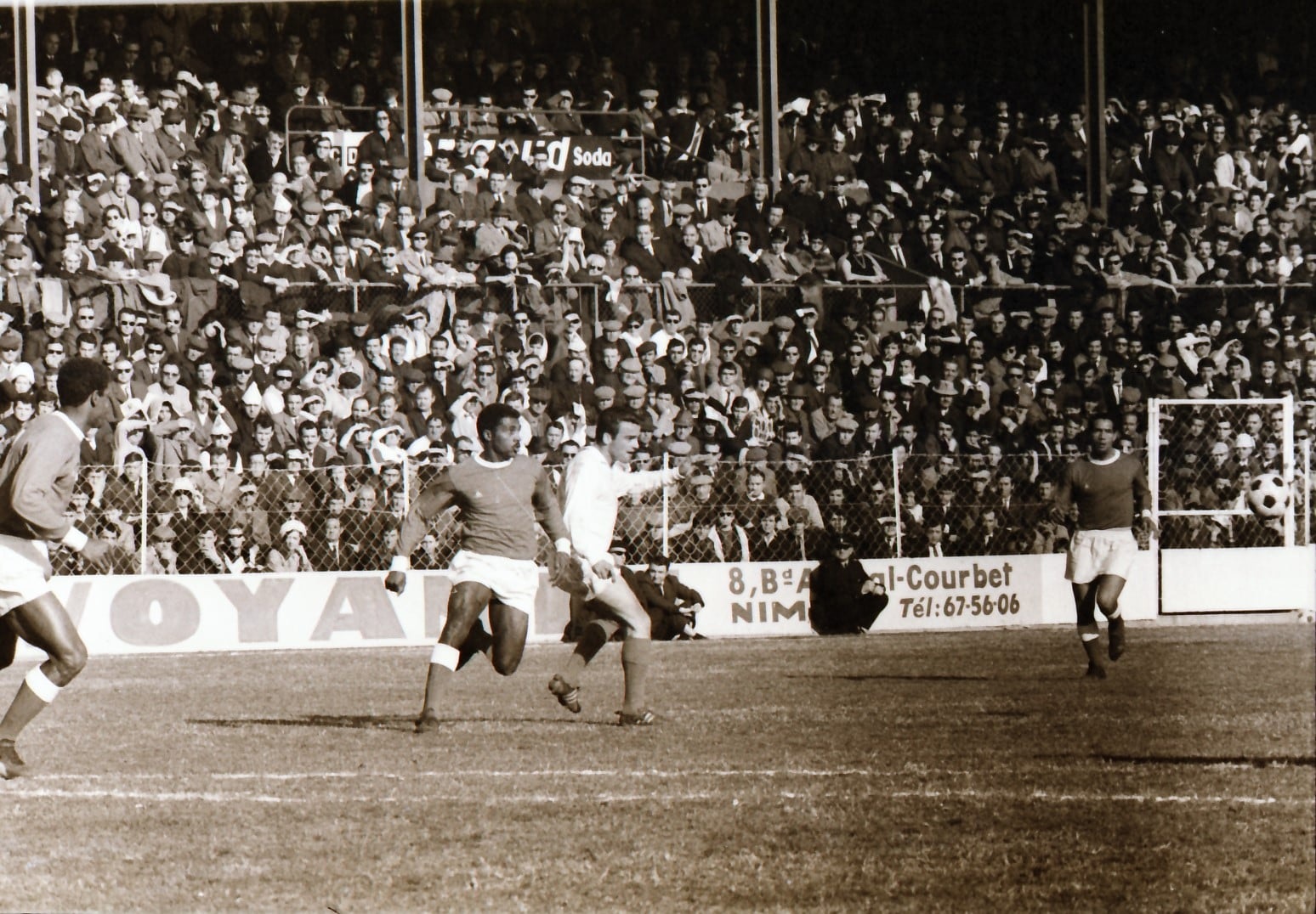 À la 8me minute, profitant d'une hésitation de la défense nîmoise, il décocha de 25 mètres, du pied droit cette fois, un tir terrible. Landl dut plonger et si reprendre à deux fois, pour éviter un nouvel affront. Ce fut le seul et dernier exploit du goal nîmois. Mais, en fin de partie, ce fut au tour de l'état-major et des supporters olympiens de trembler. S'étant laissé surprendre dans un cafouillage, une mêlée ouverte à la mode du rugby, Skoblar resta au sol, comme k.o. On le releva, en le soigna, on le porta sur la touche. Est-ce l'horrible accident ? Non, tout de même, une simple élongation d'un muscle de l'épaule. Une deuxième mi-temps sans joie La deuxième mi-temps fut ce que l'on peut voir de pire dans un sur un terrain de football en 1967. De cette très de période de jeu, Robert Domergue devait nous dire : "Ce fut un derby". M. Leclerc : "Il faut reconnaître que le public a le droit de se plaindre, car le spectacle a été mauvais." M. Gebelin, l'ex-joueur et délégué au match : "Ce sont avec des matches pareils que l'on vide les stades. Les entraîneurs en sont les principaux responsables." Un spectateur neutre Montpellier : "On aurait dit Pignans - Laverone !" Cette gerbe d'opinion nous évitera de longs commentaires. Dison, cependant, que le grand maître du jeu fut le ballon, deux joueurs seulement se montrant capable de maîtriser épisodiquement : Skoblar et Marcellin. Nîmes poursuivie sa domination stérile, Chillan, seul devant Escale et vraisemblablement hors jeu tira à côté.. et Landl n'eut plus un sel tir à arrêter. Ce qui devait permettre à Marcel Rouviere de nous dire en guise de conclusion : "Ils avaient l'épée et nous les banderilles". Maurice FABREGUETTES |