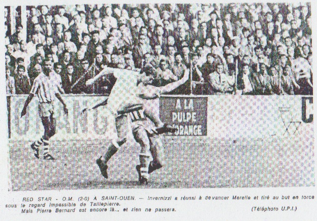 PARIS - Près de 15.000 spectateurs étaient venus au stade de Saint-Ouen pour voir cette confrontation entre le Red-Star et l'Olympique de Marseille. Une pluie rageuse s'abat sur la pelouse au moment même ou le coup d'envoi est sifflé. Ce ne sera qu'une averse de courte durée et le match se déroulera dans des conditions tout à fait normales. Les deux équipes jouent dans la formation annoncée. L'O.M. dès le début obtient un coup franc. Joseph fonce et alerte très sérieusement la défense du Red-Star. Peu après, Invernizzi part dans le trou. Ce préambule offensif donne quelques illusions quant au comportement de l'O.M. Hélas ! Les illusions vont s'effilocher tout au long de la partie pour aboutir au résultat que vous savez. Saint-Ouen morne plaine Les minutes qui suivent les deux initiatives de l'O.M. voient tour à tour les deux équipes tenter leur chance sans pour cela rendre la partie intéressante, l'après-midi est morne comme un retour de vacances. On note pourtant (pour la forme) un arrêt d'Escale sur un tir assez sec d'Ahache. Un corner sifflé contre le Red-Star ne donne aucun résultat malgré un saut fantastique (mais habituel...) de Joseph. À la 14e minute, Robuschi manifeste sa présence par une tête bien dirigée à la suite d'un centre d'Invernizzi. Les deux défenses dominent le match ce qui explique l'aspect peu spectaculaire de la partie. Un coup fourré Il faudra attendre une demi-heure (29 minutes exactement) pour que ce côté négatif change. Nous assistons alors à un coup fourré. Sur une attaque très confuse du Red-Star quelques pichenettes font virevolter le ballon de pied en pied. Artelesa, en déséquilibre tombe, de même que Zwunka et Soukhane. À l'étonnement général - y compris celui des supporters du Red-Star - l'arbitre M. Dhumerelle désigne le point de penalty. Nous apprenons - après le match -que l'arbitre a voulu sanctionner une main d'Artelesa main que l'intéressé nie farouchement avoir mis sur le ballon. |