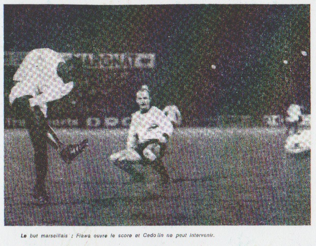 RENNES - Temps doux et humide ; excellente pelouse ; éclairage remarquable. Arbitre : M. Carette, un peu tendre pour l'O.M. 10.801 spectateurs pour 50.000 Fr. de recette. LES EQUIPES O.M. - Escale (1), Novi (2), Artelesa (3), Zwunka (4), Djorkaeff (5), Donat (6), Destrumelle (7), Fiawoo (8), Joseph (9), Bonnel (10), Robuschi (11) - Casolari (12). Rennes - Robin (1), Jatzyk (2), Beaulieu (4), Cedolin (5), Cartier (3), Rossignol (8), Mosa (6). LA PARTIE Floch (7), Rodighiero (9), Takac (10), Rico (11). Beaucoup de monde hier soir autour de la pelouse de Rennes, éclairée "a giorno". L'O.M. présentait l'équipe annoncée, à cela près que Bonnel occupait l'aile droite, Robert Domergue ayant placé Joseph et Fiawoo côte à côte au centre de l'attaque. Rennes aligne deux amateurs, Beaulieu et Rossignol. L'international Cartier effectuant sa rentrée. Par une soirée douce et nuageuse, les deux équipes abordent le match avec assez vivement. La première action dangereuse était menée par Rico, dans le centre-tir tendu était chassé prudemment du coin par Escale (8e mn). Peu après, Rodighiero et Takac étaient près d'aboutir. Le but chauffe ; on crut au but à la 11me mn lorsque Takac reprit de plein fouet de l'extérieur du pied un centre de Floch, qui avait servi lui-même. La balle frôla la cage. L'attaque rennaise, que l'on disait peu efficace, faisait merveille. À la 15e mn, Escale déviait un centre de Takac, Rodighiero reprenait de la tête et mettait la balle dans les bras du gardien marseillais. Deux minutes plus tard, nouveau déferlement et passe remarqua de Takac à Floch. L'O.M. desserrait l'étreinte et obtenait un coup franc sur Joseph, bien parti, était balancé par deux Rennais. Coup franc contre lui. JOSEPH seul Mais à la 22e mn tout le stade trembla lorsque Joseph partit seul sur passe de Fiawoo, dribbla Robin sorti à sa rencontre, mais fut rejoint et abattu par Cedolin. Une belle action ratée sans qu'on puisse incriminer Joseph, qui avait beaucoup de monde autour de lui. Rennes reprenait sa pression, mais l'O.M. ouvrait la marque au moment même ou Escale venait d'échapper au pire. 28e minute : but de FIAWOO Fiawoo s'engouffra au centre, comme Joseph précédemment, résista à Cédolin et de la droite ajusta un tir croisé à mi-hauteur qui fit mouche. |