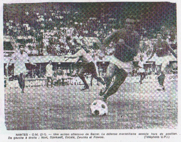 Michel : "Il manquait un patron" L'O.M., est une équipe bien difficile à jouer, nous disait l'ancien aixois Henri Michel. Mais je pense que Bonnel leur a beaucoup manqué au milieu du terrain, ou mes amis marseillais n'ont pas fait la loi. "Pour nous Nantais, il est très satisfaisant d'avoir débuté par dux victoires. Notre équipe est jeune et sympathique. De Michel : "Magnusson un très grand joueur Magnusson est un très grand joueur, qu'il ne faut pas quitter d'une semelle, nous à dit Gaby De Michele, le garde du corps du Suédois. Il est presque impossible de lui enlever la balle sans commettre une faute. Je pense ne pas m'en être trop mal tiré devant lui. C'est un client difficile. Joseph : avertissement Sans avoir rien fait de reprirent incisif, Joseph a écopé d'un avertissement pour avoir disputé la balle d'une façon un peu trop vigoureuse. |