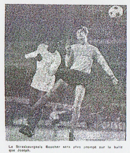 Il semble que tout le monde ait manqué de sang-froid, en la circonstance. N'insistons pas, c'était, dans le fond, une querelle de "braves" gens et notre conclusion sera : A l'avenir, il faudra vendre dans le stade des bouteilles en matière plastique. Une finale c'est autre chose De la rencontre, il reste peu de choses à dire. L'O.M. a fort mal joué. C'est évident. Nous pouvons, cependant, rassurer les supporters olympiens. À huit jours de la finale de la Coupe, il est banal de voir l'un des deux équipes intéressées par cet événement faire une contre-performance. Nous pourrions vous citer une bonne dizaine d'exemples. Il apparaît, cependant, que l'équipe marseillaise est fatiguée en ce moment. Il est vrai que certains de ses joueurs viennent de disputer un trop grand nombre de matches consécutifs. Mais il ne faut pas s'affoler, dans huit jours l'équipe peut fort bien avoir retrouvé son équilibre physique et moral. Une finale, à Colombes, est toujours une rencontre spéciale. Huck : un véritable espoir Strasbourg ayant marqué deux buts en première mi-temps, refusés pour des questions de millimètres, commit l'erreur de vouloir conserver le bénéfice du match, en groupant ses principales forces devant Schuth et en "gelant" le jeu. Cette fausse tactique faillit lui coûter le match. Ne terminons pas sans dire la bonne impression produite par le jeune Huck (No 10). Un footballeur qui, déjà, sort vraiment de l'ordinaire. |