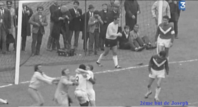 Accrochages La rencontre repris sous un ciel gris. D'entrée, Bordeaux par son brésilien Ruiter, contraignit Escale à un spectaculaire arrêt, mais les Girondins, visiblement loin de la forme qui leur permit de terrasser Sedan en demi-finale, allait rapidement subir à nouveau l'ascendant des Marseillais. Les offensives de ces derniers furent nombreuses, mais hélas, il n'y eut guère d'occasions de buts. Il y eut par contre de nombreux incidents, des accrochages assez sévères. Joseph et Péri réglèrent leur querelle à la 65ème minute. Joseph eut le premier avantage, en infligeant un knock-down à l'arrière central bordelais, mais ce dernier remporta le second round quelques secondes plus tard en descendant le Noir avant-centre de l'O.M. pour le compte. Pour ce combat singulier, Joseph et Péri écopèrent d'un avertissement. La meilleure occasion pour Bordeaux se présenta à la 60ème minute lorsque, sur contre-attaque, quatre Bordelais déferlèrent sur le but d'Escale, avec pour seul opposant Lopez. Mais ce dernier, miraculeusement, parvient à récupérer le ballon. Comme Lopez en première mi-temps, Jean Djorkaeff monta souvent pour soutenir son attaque, mais Joseph, Gueniche, Magnusson, ne parvenaient pas à trouver la faille. Sur un tir de Novi, Montes relâcha le ballon, mais Baudet parvint à dégager in extremis en corner, alors que Joseph se précipitait (66ème minute). Pour tenter de redonner un peu plus de punch à son attaque, Bakrim, la 66ème minute, sorti Burdino et fit rentrer Couecou. Ce dernier réussit un tir dangereux à la 68ème minute et Marseille maintient sa pression. Enfin, à la 82ème minute Le match devint plus heurté et il y eut de nouvelles bagarres d'abord entre Péri et Joseph (79e), puis Calleja et Joseph (80e). M. Machin eut fort à faire pour calmer les esprits et avait un match plus difficile à diriger que Manchester - Milan A.C., qu'il l'arbitrage jeudi soir à Old Crafford. L'idée de la prolongation faisait son chemin lorsque, à la 82ème minute, Jacky Novi, face aux buts, tira de toutes ses forces. La balle trouva Joseph sur sa trajectoire. Ce dernier dévia légèrement le ballon qui alla ricocher sous la barre transversale avant de terminer sa course au fond du but girondin. Marseille menait 1 à 0. Colombes s'enflamma, une trentaine de supporters marseillais se précipitèrent sur le terrain pour étreindre Joseph. Accablé par ce but, les Bordelais se montrèrent incapables de réagir et, à la 89ème minute, Marseille allait réussir le k.o. parfait. Joseph Bonnel déboula vers le but de Montes, vit son tir échouer sur le poteau gauche, Joseph qui avait intelligemment suivi récupéra la balle et inscrivit son second but (89e). Le terrain fut littéralement envahi et il fallut attendre cinq bonnes minutes avant que les milliers de supporters marseillais n'acceptent de quitter le terrain. Le terrain cerné, le match repris, mais les fans de l'O.M. n'eurent pas à attendre longtemps pour faire le triomphe que mériter les Olympiens pour cette septième victoire en Coupe de France. Robert BUREAU |