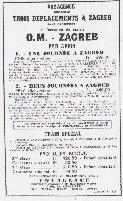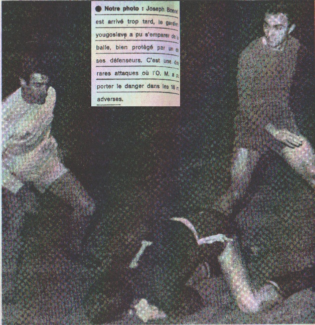 Jules Zwunka regagnait la douche les jambes les cuisses marquées de balafres et d'ecchymoses. Il nous disait : "Je suis complètement épuisé. Mais dans le fond, les seuls regrets que nous pouvons avoir concernent le match aller". Loubet : "Il est bon c'est arbitre !" Il est amusant c'est arbitre bulgare nous a dit Loubet en souriant. En deuxième mi-temps, près de la fin, j'ai été bousculé en pleine surface de réparation par deux adversaires. Je suis resté au sol. C'est de bonne guerre. L'arbitre a couru vers moi à toute vitesse et levant le point. J'ai pensé que peut-être il avait accordé un penalty... Il venait au contraire pour me faire des remontrances en accusant, je crois de faire du cinéma". Horvat : "L'O.M. meilleur qu'à Marseille !" L'O.M. n'a pas fait mauvaise impression, loin de là, sur ses adversaires yougoslaves. C'est ainsi que l'immense entraîneur Horvat nous déclarait dans le couloir des vestiaires : "Je suis évidemment satisfait du résultat. Vous savez, nous nous serions même contentés d'une victoire par 1 but à 0, voire un match nul 0 à 0. L'essentiel était bien de nous qualifier. "Mais ce que je peux vous dire c'est que vos compatriotes marseillais ont fait la meilleure impression". |