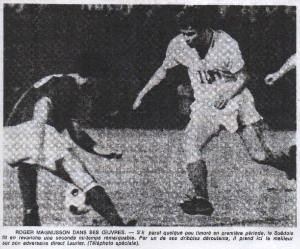 DEUX DÉCISIONS CONTESTÉES DE M. WURTZ La deuxième mi-temps avait débuté dans un climat très passionné et qui vint envenimer, dès la quatrième minute, une histoire de corner. Tiré par Magnusson directement cette fois, la balle fut reprise de plein fouet par la tête d'or de Skoblar. Darmenia était battu, mais Laurier dégagea du pied. Sur la ligne ou derrière ? Voilà la question qui se pose. De notre place haut perchée et située à l'autre extrémité du terrain, nous ne pouvons avoir aucune opinion, d'autant plus que la fameuse ligne si elle fut jamais tracée, avait totalement disparu sous la boue. Les Olympiens n'en entourèrent pas moins M. Wurtz pour le faire revenir sur sa décision mais l'arbitre le plus galopant de France resta inflexible. Il refusa même d'aller consulter son arbitre de touche. La même comédie allait se reproduire une vingtaine de minutes plus tard dans des conditions cette fois différente. Magnusson, dont les actions commençaient à remonter sérieusement depuis le début de la mi-temps, réussit une merveilleuse série de dribbles sur la droite. Son centre trouvait Skoblar qui ne rata pas pareilles occasions pour marquer. On crut alors que le but était accordé, mais après une nouvelle conférence et consultation cette fois avec son arbitre de touche M. Wurtz refusa pour hors jeu. Nous ne pouvons bien entendu rien affirmer, notre place n'ayant pas changé, mais il nous a bien semblé que Skoblar n'était pas hors jeu. LE RÉVEIL DE MAGNUSSON A l'origine de ce redressement de l'O.M. qui lui valut en définitive une victoire très méritée, il y eut le réveil de Magnusson. En première mi-temps, le Suédois s'était très souvent laissé prendre le ballon dans les pieds par ses adversaires. En seconde mi-temps, il redevint royal, insaisissable et ce fut au tour de son adversaire Laurier de ne plus savoir où donner de la tête. Or, on sait ce que représente pour l'O.M. la réussite des numéros de Magnusson. Il fut d'ailleurs à l'origine des deux buts refusés à Skoblar et de celui marqué par Loubet. C'est tout de même assez remarquable. Maurice FABREGUETTES |