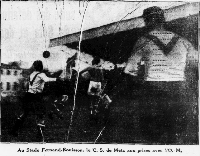 La ligne intermédiaire apparut supérieure à sa vis à vis. Bruhin, en particulier, donna à l'équipe une excellente stabilité. Son action en défense donna une plus nette sûreté ; il ne négligea pas cependant de prendre une part active dans la construction des attaques. Signalons aussi la très belle tenue de Granier qui s'améliore de jour en jour et pourra par la suite, être d'un précieux concours pour l'équipe. Enfin Bastien plein d'ardeur et de volonté, n'a pas encore acquis la plénitude de ses moyens. Son jeu est encore quelque peu brouillon, défaut qu'il lui sera facile de rectifier, étant donné ses merveilleuses aptitude au poste de demi-aile ; En attaque, les plus en vue furent Kohut et Durand. Leurs déboulés rapides, leur façon de se rabattre dans l'attaque, leurs centres précis et leur shoot très dur obligèrent les Messins à une surveillance serrée de ces deux joueurs. Zatelli, au centre, ne fut pas toujours à son affaire, étroitement surveillé qu'il était par Zehren. Les inters ne lui fournirent pas suffisamment d'occasions pour se défaire de cette surveillance. Notons cependant quelques tentatives de style de Ignace qui gagnerait, malgré ce, à appliquer une action plus directe en utilisant son ailier et au besoin, selon les circonstances, en déplaçant le jeu sur le point le plus favorable. Dans l'ensemble, l'harmonie générale du team s'améliore sérieusement. Il faudra cependant encore du travail dans l'art de la mise au point pour affronter les dures rencontres que les Olympiens auront à soutenir à l'extérieur. Metz ne se montra point sous son vrai jour. Jamais son équipe donna l'impression de trouver une conclusion victorieuse. La ligne intermédiaire ne montra pas une classe transcendante, de même que l'attaque ne fit montre d'aucune qualité incisive. Emme joua mollement, fut longue pour affirmer une décision et aucun des joueurs la composant ne donna l'impression de posséder un shoot suffisant pour surprendre une défense telle que celle de l'Olympique. Seul, le trio défensif joua convenablement et donna, par ses interventions l'occasion d'attaques que les demis ne surent pas toujours amorcer. Il est à penser, cependant, que la forme de Nock et Zehren est d'ordinaire bien meilleure, car ce sont deux joueurs capables d'un bien supérieure exhibition que celle d'hier. Georges DARBOS |