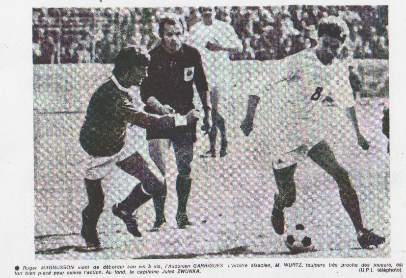 "UN COUP IDIOT" Nous avons demandé à Jean-Paul Escale comment il avait pu, en seconde mi-temps envoyer le ballon de la main droite dans les pieds de Pintenat à la limite de la surface : "C'est un coup complètement idiot. Je voulais adresser le ballon à Charly, mais à ce moment-là, j'ai accroché le bras de Jules et la balle m'a complètement échappé. J'avoue que j'ai eu chaud". Et par la même occasion tous les Marseillais présents dans les tribunes.