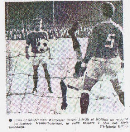 "J'AI DÛ JOUER DERRIÈRE" On ne n'a pu s'étonner de voir aussi souvent Skoblar opérer en retrait qu'à la pointe de l'attaque. Voici sa réponse : "Oui, j'ai du assez souvent décrocher, mais ce n'était pas pour suivre une consigne mais tout simplement parce que le ballon ne venait. Il fallait bien alors que j'aille le chercher !" Josip, hier, a vraiment payé de sa personne. !