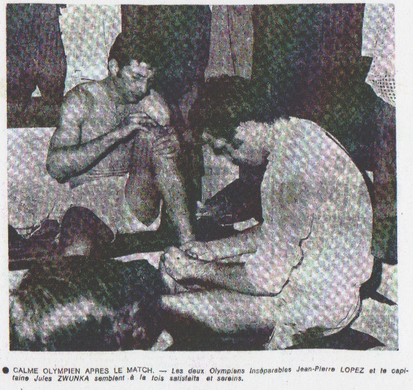 "AH ! CES CHEVILLES" Joseph Bonnel récupérait après avoir comme d'habitude couvert beaucoup de terrain. "Vous ne pouvez pas vous imaginer ce que j'ai souffert aujourd'hui. Le terrain était dur comme du ciment et en retombant, après une détente, je me suis abîmé une cheville. Non pas la droite, qui me gêne depuis quelque temps mais l'autre". Un autre grand travailleur Jacky Novi l'approuvait : "Ce match a été terriblement dur. Ce terrain était vraiment très éprouvant".