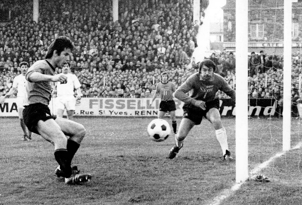 RENNES - Dans les vestiaires bretons, ce qui nous a frappé avant tout, ce sont les larmes de Toutblanc, qui n'avait même pas participé à la rencontre. À côté de cette émouvante manifestation, la joie était, bien sûr, à son comble. Prouff nous dit : "Nous avons très bien joué le coup, et je pense que nous devions nous qualifier avant l'épreuve des penalties. Les joueurs sont tous fatigués, mais le public, au moins, en a eu pour son argent". Le capitaine Cardiet, comme le jeune Keruzore, estimaient que le résultat était tout à fait logique, et Guy, sous les accolades, avait le temps de s'écrier : "C'est magnifique, ma première finale depuis 12 ans ! Quant à Aubour, qui a eu bien du mal à se défaire de ses supporters enthousiastes, il nous avouait, en essayant de reprendre sa respiration : "Vraiment un jour extraordinaire ! Mais voyez-vous, quand l'épreuve du penalty est arrivée, j'étais sûr que nous allions nous qualifier, car je savais que j'arrêterais au moins deux tirs. "Je vous assure, ce n'est pas par forfanterie que je dis cela. J'ajouterai même que ce n'est pas drôle pour l'O.M. de se faire éliminer de la sorte. J'ai beaucoup d'amis à Marseille, et je voudrais que vous vous fassiez mon interprète pour leur dire que je suis de tout coeur avec eux. Ce qui n'enlève rien, bien entendu à mon immense satisfaction. "Nous avons gagné le droit d'aller à Colombes". |
