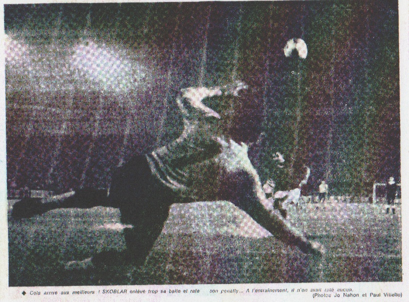 "Enfin, n'en parlons plus. Mais je regretterai, par contre, longtemps ce tir sur le poteau de la deuxième mi-temps. Je crois qu'il pouvait faire mouche, avec la victoire au bout. "Nous ne méritions pas ça..." Opinion reprise par le choeur des olympiens abasourdis, à l'image de Hodoul pourtant l'un des plus brillants sur le terrain. "Sur la fin, la fatigue nous a envahis et durant la prolongation ce fut très pénible. "Est-ce que Novi et Skoblar en ressentirent encore les effets durant l'épreuve des penalties. Je ne sais. De toutes façons, il nous reste du pain sur la planche pour le championnat et la Coupe..." Et de son côté, Roger Magnusson, qui s'avéra remarquable durant les 120 minutes, marquant par ailleurs un penalty superbe, surenchérissait : "Il faut que nous gagnions samedi à Nantes. Ce sera peut-être mieux ainsi". Questionné ensuite sur le Tchèque qui l'avait le plus impressionné, il répandait sans hésitation : "Dobias ! Quelle classe et quelle facilité !" Pour sa part, Didier Couecou, marqué d'une large estafilade à la cuisse droite, exaltait sa rancoeur : " Ah ! ne me parler plus de ces types. Qu'est-ce qu'ils laissent tomber. Certes moi aussi je donne des coups, mais je ne me plains pas. Eux, ils se sont mis à deux pour me frapper. Est-ce que ça méritait mon expulsion ?" Jules Zwunka, calme comme à son habitude, déclarait : "Voyez-vous, c'est ça le football. Avec ses joies et ses douleurs. Mais je suis peiné pour le public. Ils attendaient tout, il nous avait accordé sa confiance, son appui total. Et le voilà encore désemparé, quelle misère ! "Pour parler comme dans le midi, nous étions ce soir, "emboucanés" ! Gérard PUECH |