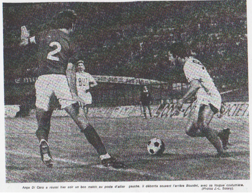 Les coulisses du stade font résolument peau neuve. Après les vestiaires, ce sont les couloirs qui ont été fraîchement repeints en bleu tendre, sans doute pour rendre optimistes ceux qui les parcourent. Il est vrai que les soirs de victoire, cela s'avère tout à fait inutile... Les premiers mots du président Leclerc en rejoignant ses hommes furent pour Ange Di Caro qu'il félicita chaleureusement. Interrogé sur la réussite de cet essai, il confirma tout le bien qu'il pensait de son jeune ailier gauche : "Di Caro a fourni un très bon match. J'irai même jusqu'à dire que sa performance de ce soir il vaut Rico ou Dellamore, deux joueurs qui nous coûterait une petite fortune si nous voulions nous attacher leurs services. "De plus Di Caro n'a que 21 ans et de ce fait est très perfectible. "Pour ce qui est de la rencontre proprement dite, je crois que notre plus sérieux motif de satisfaction est d'empocher les deux points de la victoire. "Incontestablement l'équipe ne tourne pas encore à son meilleur régime. Peut-être faisons-nous trop de démonstration, peut-être aussi avons-nous perdu de leur hargne qui faisait notre force naguère : on s'applique trop, on ne veut trop sacrifier au beau jeu alors qu'il conviendrait de jouer beaucoup plus vite. "C'est ce que j'ai tenté de faire comprendre aux joueurs à la mi-temps. "Il semblerait qu'ils aient compris, sur le vu de la deuxième mi-temps. "De toute façon, cela ne saurait être qu'un problème passager". NOVI : "PAS DE RÉUSSITE" C'est en ces termes que Jacky Novi commentait la rencontre. "Aujourd'hui encore, nous avons manqué beaucoup d'occasions de but. C'est toujours le même problème : on domine, on ne parvient pas à marquer et finalement on s'énerve. L'opinion corroborée par Gilbert Gress qui n'était pas très satisfait de son propre match. |