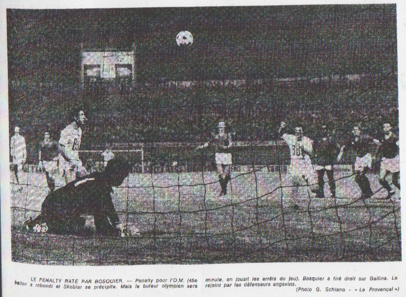 L'équipe marseillaise est désormais libérée par ce but attendu et Skoblar qui a ouvert la voie ne va pas rester en si bon chemin. Il reçoit la balle alors que les défenseurs angevins l'ont quelque peu délaissé. Il s'avance et, avant que Gallina ait pu amorcer une quelconque intervention, il tire fort dans le coin gauche. Cela fait un deuxième but superbe (70e minute).