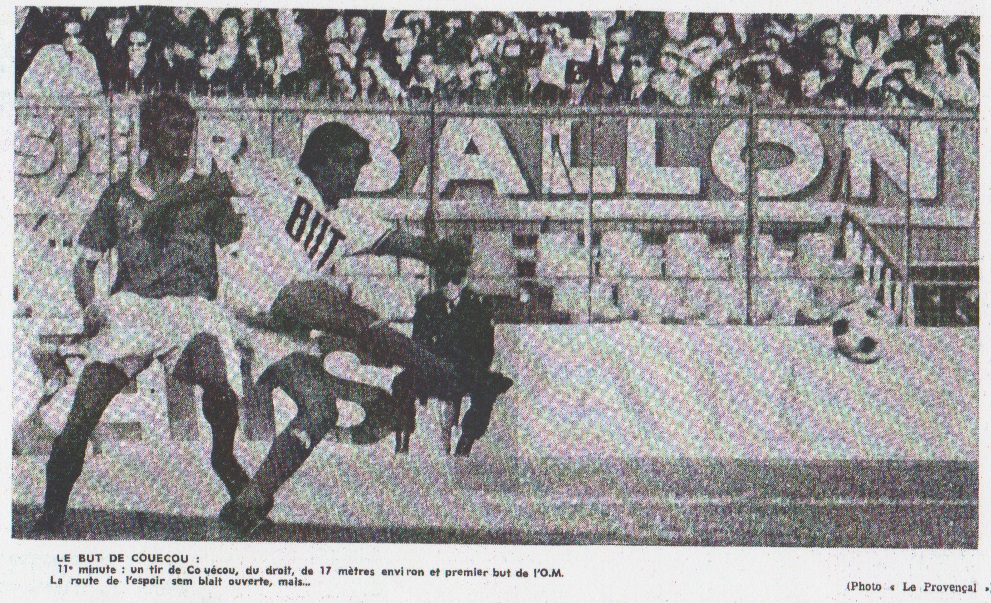 La veille de la rencontre, Albert Batteux avait dit : "Il ne faut pas voir à travers cet O.M. - Saint-Étienne, un match d'une aussi grande intensité que les années précédentes". L'entraîneur stéphanois cachait-il son jeu ? Ou bien croyait-il réellement que l'O.M. actuel serait pratiquement intouchable sur son terrain ? Toujours est-il que le point de vue d'Albert Batteux n'a pas été confirmé par la réalité. La présence tout d'abord, des quelque 40.000 spectateurs sur les gradins du stade vélodrome indiquait nettement que le public marseillais, lui, reconnaissait une certaine importance à la rencontre. À la fin, sans parler de la défaite ni même de la blessure de Lopez, quatre joueurs olympiens avaient écopé d'un avertissement : Bonnel, Zwunka, Skoblar et Gress, les victimes pourront affirmer, de leur côté que la partie s'était bien déroulée sous le signe de la rivalité. À signaler que Bosquier s'était finalement décidé à céder sa place à Hodoul. Un fait tout de même important. COUECOU AVAIT DOONE LE TON Pour reprendre le fil des débats, Saint-Étienne au début de la rencontre s'était efforcé de prendre, par un jeu fouillé, la mesure de son adversaire. Mais après que Carnus eut détourné un tir à bout portant de Revelli (3me mn), et qu'Herbin, d'un coup de tête miracle repoussait une balle de Bonnel qui prenait le chemin des filets, l'O.M. allait parvenir à ouvrir le score. Couecou venait à peine de propulser un centre de Skoblar vers les nuages (10e mn), quand il reçut, quelques secondes plus tard, une passe de Bonnel. La balle avait été centrée par Novi et rabattue par la tête du numéro 9 marseillais dans les pieds de l'ailier gauche. Cette fois, Didier prit le temps de contrôler et de battre d'un très joli shot le gardien stéphanois (11me mn). Ce but réussi d'entrée laissait espérer aux supporters marseillais une facile victoire, Saint-Étienne, cependant n'allait pas tarder à réagir. UN KEITA DÉCHAÎNÉ. Les Stéphanois, sous l'impulsion de Keita et aussi de Bereta démontrait depuis le début de la partie, qu'ils étaient encore de taille à rivaliser avec les meilleurs. On avait beaucoup parlé des jeunes du club, mais c'étaient surtout les joueurs confirmés qui donnaient leur pleine mesure. Coup franc donc, que Larqué donna pour Bereta. L'ailier gauche stéphanois alerta à son tour Herbin, placé aux avant-postes qui, de la tête, remit en retrait pour Keita. Le Malien s'enfonçant comme un fer de lance dans la défense marseillaise et d'un tir bien ajusté, ne laissa aucune chance à Carnus (15me mn). Tout était à refaire. Carnus fut bien inspiré en repoussant d'une manchette une nouvelle tentative de Bereta mis en position après un remarquable travail personnel (20me mn). Magnusson à son tour, fut à deux doigts de donner l'avantage à l'O.M. Incontestablement, des deux gardiens, Castel était le plus sollicité. NOVI, COMME À BORDEAUX. Le gardien stéphanois dut repousser, tout d'abord, un tir de Bonnel, après un relais Skoblar Couecou. Mais le danger n'était pas écarté pour autant. Saint-Étienne faisait des efforts désespérés pour repousser une balle devenue ô ! combien brûlante. Ce ballon, ce fut Novi qui en hérita, à quelque 25 mètres de la cage de Castel. Jacky, sans réfléchir une seconde prit sa chance. Du pied gauche, comme il l'avait fait à Bordeaux, il reprit le ballon de plein fouet. Dans le stade, ce fut une explosion. Castel n'avait pas eu le temps esquisser le moindre mouvement. Ses filets, pour la deuxième fois venaient de trembler. L'O.M. menait encore à la marque (25e mn). LA RÉPLIQUE DE KEITA Hélas l'espoir fut à nouveau de courte durée. Et comme tout à l'heure, Salif Keita allait tout remettre en question. |