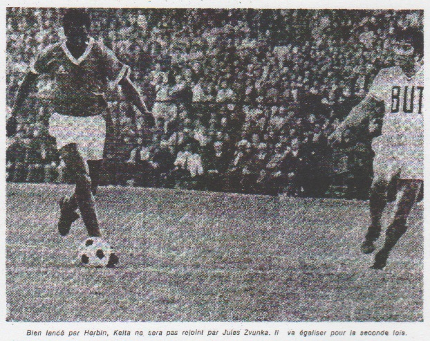 Inutile de dire que les joueurs stéphanois, très occupés à préserver un bon match nul, sont revenus au vestiaire avec un sourire grand comme ça. Le président Rocher, en tirant sur sa pipe, nous disait : "Je ne peux dire, évidemment, que je ne suis pas content. Je suis même comblé par ce résultat acquis avec une équipe largement remaniée. Mais nos jeunes se comportent de façon inespérée. Vous avez pu en juger !" Le capitaine Herbin ajoutait : "Nous avons bien joué le coup. Une très bonne première mi-temps. Un début de seconde période prudent, pour souffler un peu, et le parquet au cours du dernier quart d'heure. Cela nous a réussi. Et je reconnais que le match s'est joué sur un véritable coup de dé !" Salif Keita commentait ainsi son extraordinaire partie : |