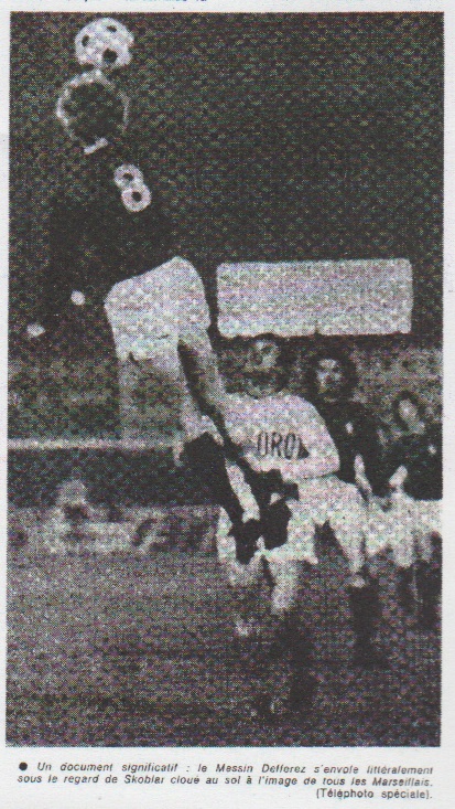 Voilà, à coup sûr, un garçon dont on reparlera. L'O.M. de son côté, jouait bien trop lentement au milieu du terrain et faisait dans le fond, plutôt illusion car ces actions avortaient régulièrement aux abords de la surface adverse. Le temps passait et, alors que les Messins, à un moment donné pensaient surtout à conserver leur avantage, l'équipe marseillaise s'avérait incapable de passer la vitesse supérieure : pire, elle encaissait un second but marqué - ironie du sort - par Victor Zvunka à la suite de d'une contre attaque menée à fond avec un enthousiasme qui contrastait avec la philosophie résignation qui semblait marquer, hier, l'O.M. dans son ensemble. L'indiscutable victoire lorraine, même si elle fut amorcée par le vétéran Combin fut, avant tout, celle de la jeunesse et de l'enthousiasme. Skoblar et Keita muselés Si la défense encaissa deux buts, ce qui est beaucoup si l'on se réfère au nombre assez limité des situations dangereuses, l'attaque marseillaise fut la principale déception de la soirée. Skoblar et Keita, qui avaient été très efficaces contre Reims, furent aussi effacés qu'ils s'étaient montrés brillants face aux Champenois de Lucien Leduc. Pourtant, on ne peut dire qu'ils n'aient pas été soutenus, comme ce fut parfois le cas à l'extérieur, mais ils furent, l'un comme l'autre, habilement pris en charge : Salif par Victor Zvunka, excellent ; Josip par l'arrière Rastoll qui ne lui laissa jamais les coudées franches en ne lésinant pas, il est vrai, sur le choix des moyens. De ce fait, les deux ténors de l'attaque marseillaise ne purent inquiéter une seule fois Schuth, dont le seul travail fut, hier soir, de stopper deux tirs appuyés, mais trop lointain de Bernard Bosquier. Reconnaissons que c'était évidemment peu pour enlever une rencontre face à un adversaire extrêmement agressif et désireux de faire oublier à son public son écrasante défaite de Bastia. À l'image de son attaque l'O.M. a déçu fortement, hier soir, en jouant trop mollement presque sans conviction et, répétons-le, avec une philosophie et une résignation assez curieuse de la part d'une formation entrait dans le sprint final. Louis DUPIC |