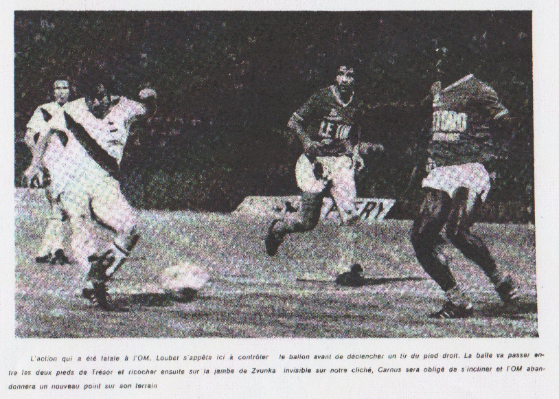 "En première mi-temps, nous avions joué sur un rythme un peu moins élevé, tout simplement parce que l'O.M. était parti assez fort et qu'il nous fallait, en quelque sorte prendre la mesure de notre adversaire. Lorsque ce fut fait, j'estime que nous avons eu la partie en mains". Beaucoup plus heureux était Charly Loubet, un peu parce qu'il risque de revenir à Marseille et réalisé une bonne affaire, qui est actuellement en cours, malgré tous les bruits contradictoires, mais aussi parce qu'il avait marqué, devant son ancien public le but qui donnait le match nul à son équipe et il nous dit tout simplement : "Pour moi, finalement, c'est une bonne soirée, marquer un but à Marseille, c'est toujours un plaisir". Et se retournant vers Georges Carnus, il lui dit en riant aux éclats : "Je te l'avais bien dit que je t'en marquerai un." L.G. |