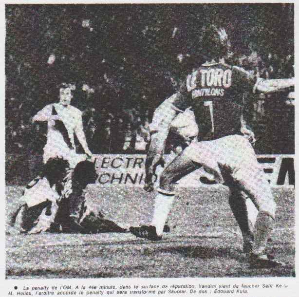 Enfin, à la 25me minute, le premier tir de la partie ! Devinez qui en était l'auteur ? Jules Zvunka, tout simplement, le seul olympien titulaire des saisons glorieuses qui n'ait jamais marqué un but, avec Escale et Carnus. Ce fut aussi le premier arrêt de Baratelli. Un peu plus tard, Carnus, voulant sans doute démontrer à son remplaçant tricolore qu'il était lui aussi en forme, arrêtait en style le premier tir niçois. De Revelli ? De Loubet ? D'Erickson ? De Huck ? Non, vous n'y êtes pas : de Vandini. Pendant tout le temps, c'est-à-dire en gros, pendant la première mi-temps, l'essentiel s'était passé au milieu du terrain, ou les deux équipes avaient massé leurs forces. L'O.M. dominait, mais Nice, procédant par de vives contre-attaques, avait posé quelques banderilles. Ce n'était sans doute pas le match au sommet espéré il y a déjà plusieurs semaines, ni même un grand match de gala, mais une plaisante opposition entre deux des meilleures équipes françaises de la saison. Ne soyons pas trop difficiles pour une rencontre à laquelle il manque tout de suite un grand enjeu. LE DOUBLE PENALTY DE SKOBLAR. Après Angers et Bordeaux, l'O.M. allait obtenir son troisième penalty à domicile, entre trois matches consécutifs. Ce tout dernier est sans doute le moins discutable. Il nous a bien semblé que Vandini avait confondu le ballon et le pied de Keita, en pleine surface de réparation. Skoblar, hyper nerveux, fut chargé de l'exécution de la sentence. Dans un silence relatif, on vit le ballon, habilement frappé, passer du côté où Baratelli ne se trouvait pas. Mais l'arbitre pour l'une de ces raisons réglementaires qui échappent généralement aux spectateurs, décida qu'il fallait recommencer. Minute de stupeur dans le stade : ce coup du sort allait-il faire perdre à Josip sa concentration ? Eh bien non : le deuxième tir fut aussi parfait que le premier. Encore que nous préférerions - et le public avec nous - les buts en mouvement au coup de pied arrêté, cet avantage de l'O.M. à la mi-temps pouvait paraître mérité. Nice avait commis l'erreur de jouer trop en défense, dans la crainte des actions supposées diabolique de Keita et Skoblar ; et l'O.M., sous l'impulsion de Keita, Skoblar et Bosquier, "libéro" très offensif avait eu les meilleures occasions de conclure, même si l'on estime que dominer n'est pas forcément gagner. KEITA RATE LE K. O. En deuxième mi-temps, le match devait changer de visage. Nice, passant la vitesse supérieure, s'assurait le plus souvent la maîtrise du jeu. On vit soudain les vagues blanches déferler vers le but de l'O.M., à la vitesse de Huck, de Loubet, de Jouve... et d'autres quittés. Cependant, cette médaille ayant son revers, l'O.M. contraint par la force des choses à jouer en contre-attaque, faillit bien prendre un nouvel avantage, qui, cette fois, eut été décisif. Deux fois sur une relance de Skoblar et un centre de Kula, Keita, du pied d'abord, de la tête ensuite, rata le KO d'un rien. D'un de ces centimètres trop a droite ou trop à gauche qui font que les supporters vous critiquent, alors que, dans le cas contraire, vous auriez été le héros du match. |