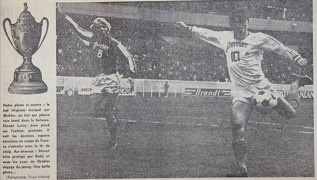 Mais, en football, à chaque jour suffit sa peine et la tâche de l'O.M., hier consistait à assurer la qualification pour le prochain tour, dans des conditions heureusement inhabituelles. AJACCIO A SURPRIS AGRÉABLEMENT Si les Olympiens gagnèrent la première mi-temps par K.O., on peut accorder aux Ajacciens le bénéfice de la victoire aux points, au cours de la deuxième période. Avantage seulement platonique, en football. Il n'en est pas moins vrai, que l'équipe d'Ajaccio mérite un large coup de chapeau, pour sa vaillance et même, parfois, pour son intelligence manoeuvrière. Elle a fort bien joué le coup et il ne lui a manqué, pour au moins faire trembler l'O.M. qu'un peu de chance. Tous les joueurs corses se battirent comme des lions (parfois avec excès, n'est-ce pas Buigues ?) et on ne saurait leur adresser le moindre reproche. Après leur cinglant échec à Sedan, ils surprirent agréablement. Rien n'est encore perdu, en championnat, pour cette équipe, si elle persévère dans ses bonnes intentions. KEITA ET SKOBLAR LES BUTEURS Sur le plan tactique, l'A.C. Ajaccio avait choisi de faire marquer Keita par Courbis et Skoblar par Bodji, Latour jouant en position de libéro. Par ailleurs, Le Lanier suivait Leclercq ce qui en fit un bon milieu de terrain et Garzito s'occupait de Di Caro. Mais le marquage individuel a parfois des inconvénients. Nul n'étant chargé de Bosquier, ce dernier put s'avancer tranquillement (10e minute) et servir Keita. Tout passa, y compris le but de Salif, comme dans du beurre. Le deuxième but olympien, grâce à un tir de Gress par-dessus le mur ajaccien et un "rush" de Skoblar est un classique coup franc. Pour savoir si Josip était hors jeu, il aurait fallu le suivre, à partir du moment où le ballon été frappé. Personne n'y pensa. Cependant, arbitre de touche n'hésita pas un dixième de seconde, pour accorder le but. Donc, tout laisse supposer que Skoblar partit en jeu, pour paraître hors jeu au moment ou il frappa le ballon. Voilà tout ce que l'on peut dire d'objectifs, au sujet de cet incident. Maurice FABREGUETTES |