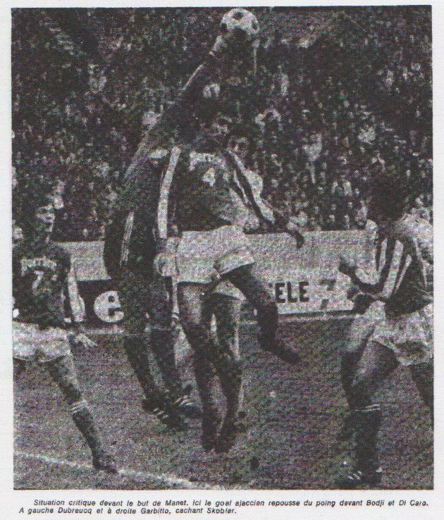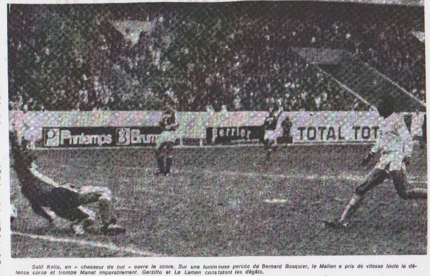 But de Keita Après que Dubreucq a adressé un tir de 25 mètres qui frole la transversale, Marseille va prendre l'avantage au tableau d'affichage. Sur une remise en touche, Bosquier récupère et contre attaque. Une longue montée offensive et une magnifique ouverture pour Keita qui trompe Manet (13e minute). Buigues sur le poteau. Il est dit qu'Ajaccio traverse une période de malchance. La preuve en aura été ce tir de Buigues sur la réaction ajaccienne après le but de Keita. Leroy et Kervarec s'étaient bien infiltrés, déplaçant la défense marseillaise au profit de Buigues, mieux placé. Celui-ci tente sa chance et son tir puissant vient s'écraser à l'intérieur de l'angle des poteaux de but de Carnus, battu. Le cuir revient en jeu et est facilement dégagé par Trésor. Nullement découragés, les joueurs ajacciens continuent leur pression , mais ni Kervarec, ni verdonk ni même Leroy ne parviennent à trouver le chemin des filets malgré de nombreuses tentatives, ou leurs tirs sont mals dirigés, ou ils trouvent Trésor ou Bosquier sur leur chemin. But de Skoblar hors-jeu Une faute de Buigues sur Skoblar - les deux hommes ne se ménagent pas - va coûter le second but, malgré un hors-jeu que seul M. Uhlen semble ne pas voir. Gress feinte la passe à Bosquier mais lobe le mur Ajaccien pour servir Skoblar nettement hors-jeu. Manet ne peut rien contre le tir du Yougoslave. Les Ajacciens protestent auprès de M. Uhlen mais cela ne leur vaut que deux avertissement (Buigues et Kervarec). Les hommes de Mori ne se découragent pas et Carnus doit plonger dans les toutes dernières minutes dans les pieds de Verdonk. La seconde période verra Ajaccio forcer encore l'allure mais sans résultat positif. Attaquant sans arrêt, parfois s découvrant et prenant des risques, les Ajacciens mirent la défense marseillaise à rude épreuve. Pourtant, ce fut Marseille qui faillit aggraver le score (80e minute, manet sauvant son cap en repoussant par deux fois des tirs à bout portant. Mario Zatelli fit intervenir le Boedec, son douzième homme, à l place de Lopez, mais cela n'empêche pas Buigues de réussire une magnifique tête plongeante qui frôla la cage de Carnus surpris par l'action. Auparavant l'ex-Marseillais avait été cravaté par Le Boedec dans la surface sans que M. Uhlen - pourtant bien placé - intervienne. Il accorda simplement un corner aux Ajacciens qui réclamaient un penalty. Il était dit qu'Ajaccio ne sauverait pas l'honneur, mais c'est la tête haute qu'il quitte aujourd'hui la coupe de France. |