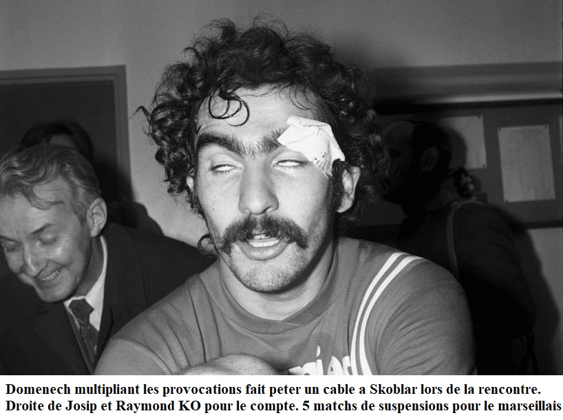 "Non, je ne regrette rien ! Domenech en avait fait assez pour qu'il ne méritât pas ce coup de poing. Il est rare, en effet, qu'un joueur professionnel se permette de venir piétiner sauvagement un joueur à terre. Il n'a que ce qu'il méritait. Aussi je ne regrette pas cette droite qu'il l'a envoyé au tapis pour le compte". "Je regrette seulement que les conséquences aient été aussi lourdes pour mon club !" oOo Mario Zatelli, lui, prenait les choses avec plus de philosophie et il nous disait sur un ton plaisantin : "Maintenant, nous voilà au moins débarrassés du souci de courir deux lièvres à la fois. Adieu la Coupe ! Tout pour le championnat ! Ce qui est embêtant, c'est que nous allons être privés de Skoblar pendant au moins trois semaines. Il va falloir nous atteler au travail avec Magnusson si nous voulons conserver la deuxième partie de notre double couronne". oOo Les joueurs, évidemment, parlaient beaucoup plus des incidents qui avaient provoqué, selon eux, leur défaite, que de la rencontre elle-même sur le plan technique. Gilbert Gress s'est montré d'un des plus virulents envers M. Peauger, qu'il accompagna de ses protestations et reproches jusqu'au vestiaire. L'Alsacien littéralement déchaîné, nous disait, approuvé par Bonnel : "Je vous assure que je lirai demain matin les journaux avec la plus grande attention, car je me demande comment vous allez pouvoir expliquer la soirée d'aujourd'hui. Je suis curieux, aussi de connaître ce que vous allez dire du comportement des Lyonnais. Est-ce là se comportait en véritables joueurs professionnels, qui font le même métier que nous ?" Lopez, qui ne parle pas beaucoup d'habitude, était également très excité : "Le Groupement avait, paraît-il, donné des consignes. Les arbitres, à l'occasion de ces quarts de finale et à la suite des incidents des matchs allers, ne devaient pas donner d'avertissement ? Une faute grâce et c'était l'expulsion. On se demande alors pourquoi les Lyonnais qui furent les premiers à commettre des agressions, à l'exemple de Domenech, pour ne citer que lui, ont eu droit à un traitement de faveur, alors que la première intervention de Bracci, qui n'était pourtant pas très bien méchante, se traduisit par la sortie du fameux petit carton jaune ?" oOo Assez curieusement, il semble que Skoblar n'ait pas été, d'ailleurs, expulsé sur-le-champ par l'arbitre. Tous les joueurs marseillais (et nous ne voyons pas pourquoi nous ne le croyons pas) disait que M. Peauger lui avait infligé d'abord un avertissement, car il avait contesté l'agression de Domenech, et qu'il ne s'était résolu à l'expulser de joueurs que sur l'insistance des joueurs lyonnais. On comprend donc de se fait que dans le cas olympien on sif confondu arbitre et adversaire, dans les mêmes reproches. Pour en terminer vers avec M. Peauger, héros malheureux de la soirée, nous voulons rappeler la conversation que le secrétaire général de l'O.M., M. Henri Neumann, avait eu avec l'un de nos confrères parisiens. Ce dernier, qui avait assisté au match de Lille, lui assurait en effet que son équipe allait avoir faire un peu plus tard à un adversaire supplémentaire, en la personne de ce malheureux arbitre. Curieuse prémonition ! Louis DUPIC |