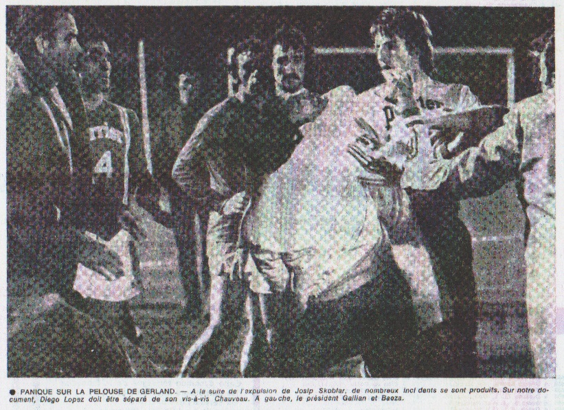 LYON - Eh bien, voici une soirée qui ne contribuera pas à détendre les rapports déjà passablement perturbés entre les deux Olympiques, celui de Lyon et celui de Marseille, ni à apaiser les rivalités qui séparent depuis toujours les deux grandes villes qui se disputent le titre géographique de dauphin de Paris ! Accueilli par les sifflets, les Marseillais sont repartis aux vestiaires sous les huées. Alors qu'on se disputait et qu'on se tiraillait encore au milieu du terrain, certains joueurs marseillais voulant dire leur façon de penser à l'arbitre, Georges Carnus avait déjà regagné les vestiaires, ou un jeune ramasseur de balle - pas des plus sportifs, on va le constater - l'apostrophait en ces termes : "Alors, Carnus, tu me le donnes ton maillot ? " Et Georges Carnus, qui venait d'encaisser quatre buts, et qui ne méritait pas pareille humiliation, de lui répondre : "C'est malin !" C'est une rumeur confuse qui nous avertit un peu plus tard de l'arrivée de René Gallian, qui poursuivait une vive conversation avec l'arbitre, M. Peauger, et les délégués. Arrivé dans son vestiaire, le président de l'O.M. ne devait pas mâcher ses mots. "Je n'hésite pas à le dire, c'est M. Peauger qui a tué le match, qui a tué le spectacle et qui a tué l'O.M. "En effet, il a laissé faire à peu près tout ce qu'ils voulaient aux Lyonnais au cours de la première demi-heure, qui, à mon avis, a été décisive. C'est, en effet, au cours de cette période que le sort du match s'est joué. Nous avions déjà eu des ennuis avec cet arbitre à Lille, où les défenseurs nordistes s'étaient livrés à de véritables agressions sur la personne de Keita, mais nous avions oublié tout cela, dans la joie de la victoire. De ce fait, il ne nous serait pas venu à l'idée de récuser cet arbitre. " Je pense qu'il est aussi responsable de nos malheurs que les joueurs lyonnais ! Après tout, ceux-ci pouvaient agir impunément et ils auraient été bêtes de ne pas en profiter. "De retour aux vestiaires, à la mi-temps, je m'étais permis de recommander au mien, ce qui n'est peut-être pas très fair-play : Vous n'avez qu'à agir comme eux, puisqu'ils vous mettent sans arrêt les semelles, vous n'avez qu'à les caresser avec vos crampons. "Mais c'est tout de même l'arbitre le principal fautif. En n'agissant pas équitablement, il a faussé complètement le résultat du match, qui se traduit pour nous par une humiliation qui, en fait, ne veut pas dire grand-chose sur le plan sportif. "Qui plus est, l'exclusion de Skoblar, si elle paraît justifiée par les faits, ne l'est pas, en réalité dans l'esprit. "Josip avait été abattu irrégulièrement, mais sans méchanceté par son compatriote Mihajlovic, mais ce fut qui l'a mis hors de lui c'est alors qu'il était à terre, Domenech, avec qui il avait eu maille à partir au cours des premières minutes, est venu lui marcher littéralement sur le ventre. On connaît la nervosité de Skoblar, mais on peut penser qu'à sa place beaucoup de joueurs agressés comme il l'a été hier soir auraient agi de même !" Le principal intéressé, Skoblar, avait d'ailleurs curieusement assisté à la fin de la partie, du bord de la touche, sur le banc de l'O.M. Nous avons retrouvé complètement calmé au vestiaire, ou il confirmait les dires de son président. Nous lui avons demandé s'il ne regrettait pas son geste, lourd de conséquence quant à l'issue de la partie, il nous répondit : |
